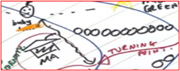 Snapshots from her visualisation capture the intersections of teaching, marriage, motherhood and ethnicity. Early motherhood was a particularly challenging time as she balanced familial expectations and cultural norms with professional aspirations. She described the ongoing pressure to code-switch and “to water herself down” to fit into predominantly white educational spaces, a strategy that offered some professional stability but came at the cost of personal and physical exhaustion.