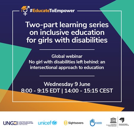 In the lead up to the G7 and the Global Education Summit convened by the Global Partnership for Education, the UN Girls’ Education Initiative (UNGEI), UNICEF, UNESCO International Institute for Educational Planning (IIEP-UNESCO), Sightsavers and Humanity & Inclusion are joining forces to launch two-part webinar series on inclusive education for girls with disabilities! When safe, quality education is available to all, it has the potential to transform our societies and reverse inequalities. 2021 is a critical year for girls’ education. Join us in learning more about, and calling for, gender-and disability-inclusive education for all.